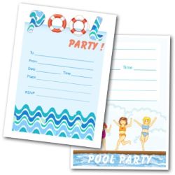 Pool Party Cards Two fun wave design invites featuring beach balls and flip-flops! The white background on these make them easy on your printer too! | |